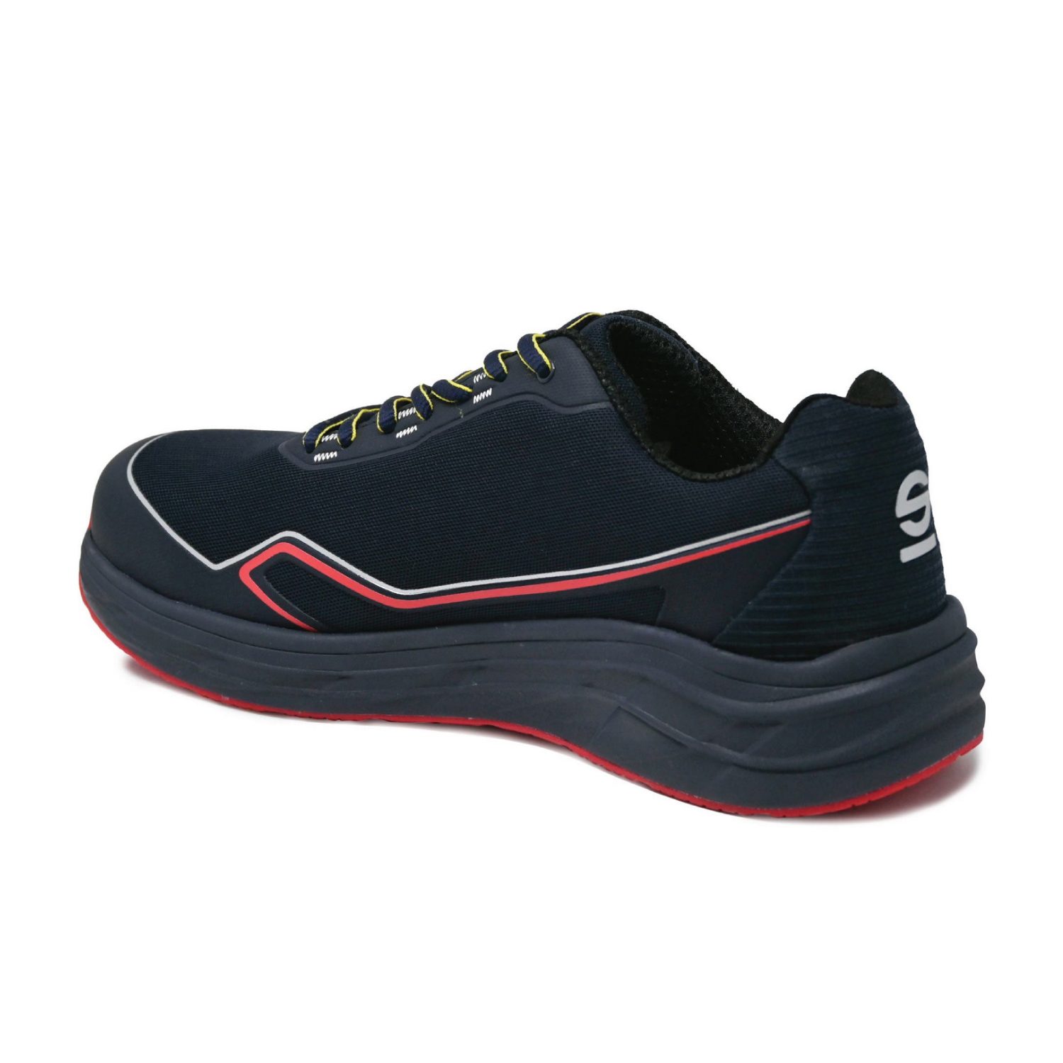 Calçado de segurança com estilo running, em conformidade com a nova norma EN ISO 20345:2022. Parte superior sem costuras em tecido 3D ultra respirável, reforços em TPU resistentes à abrasão e detalhes 3D HF.
