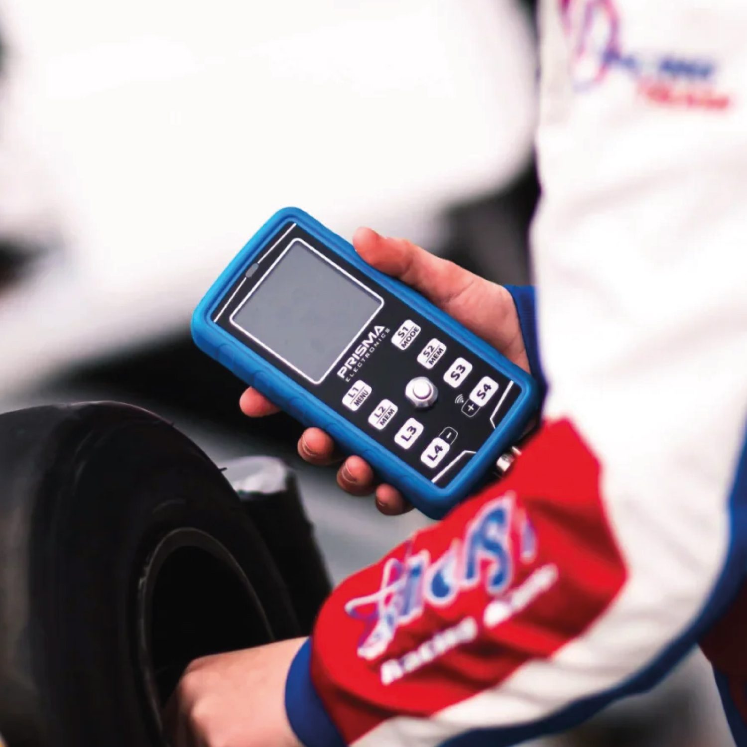 O Manómetro digital de Pressão de Pneus Prisma Electronics HPM5 com cronómetro mede e armazena com precisão a pressão de pneus a quente e a frio, enquanto regista simultaneamente tempos de volta e setores para até quatro pilotos ou condutores.